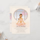 Serene e relaxada uma jovem mulher sentada em uma posição de ioga. Atrás dela está uma grande janela com vista a uma árvore florescente. Um convite delicioso para uma festa de aniversário ou qualquer evento de yoga.O convite é fácil de personalizar com seu texto, fonte, cor da fonte e escolha de seis tipos de papel.