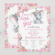 Uma Menina Doce está a caminho! Rosas Rosa Duplas Personalizadas e Cinza Elefante/Chá de fraldas de Amendoim Convidam para celebrar a chegada de uma nova menina!