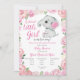 Uma Menina Doce está a caminho! Rosas Rosa Duplas Personalizadas e Cinza Elefante/Chá de fraldas de Amendoim Convidam para celebrar a chegada de uma nova menina!