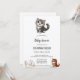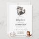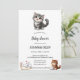 convite para gatinhos adoráveis para chuveiros de bebês com uma ilustração aquosa de um gatinho de mesa em um campo de flores silvestres. Design fora do centro com acentos de script. O verso é verde-sábio. Purr-fect para um chá de fraldas primavera.