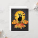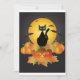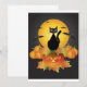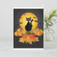Gato Preto do Dia das Bruxas Sentado em Pumpkin Esculpido com Vinhas, Gatos Voadores Estranhos e Lua Brilhante em Cartoon de Fundo Ilustração e Cartão de Convite de Desenho