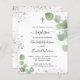 Para o batismo de 2 crianças. Um fundo branco decorado com verde de eucalipto e pó de cinza falso. Personalize e os nomes e detalhes da cerimônia infantil. Letras pretas coloridas. Sexo neutro. Fundo: fundo branco com poeira falsa brilhante.