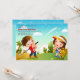Uma cena bonita mostrando um menino e uma menina no verde. O curso tem uma palmeira e plantas de cacto sob um céu azul. Perfeito para uma festa de aniversário de golfe em miniatura juvenil.O convite é fácil de personalizar com seu texto, fonte, cor da fonte e escolha de seis tipos de papel.