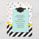Um convite festivo para a graduação com formas de abstrato, listras brancas e pretas em negrito e um painel com um boné de formatura que contém os detalhes do seu partido.<a href='http://www.freepik.com/free-vector/university-festival-memphis-poster_927198.htm'>Concebida por Freepik (). </a>() O cartão é fácil de personalizar com seu texto, fonte, cor da fonte e escolha de seis tipos de papel.<br/>() Não exatamente o que você está procurando? Todos os nossos produtos podem ser personalizados para atender às suas necessidades sem custos adicionais.<br/>() Basta entrar em contato conosco em askcottonlamb@gmail.com<br/>() Coordenando os produtos disponíveis: