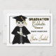 Convite de graduação com jovem personagem vestindo boné e vestido preto. Personalize a frente e o verso e faça deste convite único, mas informativo seu. Veja a mesma imagem utilizada em outros produtos.