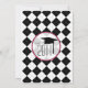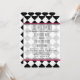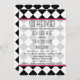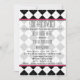 Um convite de graduação com um fundo de argila preto e branco na frente e atrás. Texto preto e forma rosa. O lado oposto apresenta um círculo dentro rosa de texto "Classe de 2011" com graduação em preto que ilustra.