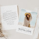 Comemore uma conquista importante com um convite à graduação para na moda que apresente uma imagem estimada no topo, captando a essência da jornada do formando. Abaixo da foto, o nome do formando, a escola e o ano de graduação são exibidos elegantemente, marcando esse marco significativo. A parte de trás do convite oferece amplo espaço para uma mensagem personalizada, permitindo que você compartilhe parabéns e desejos sinceros. Além disso, os detalhes do convite de festas são apresentados em um texto simples e moderno, garantindo que todas as informações essenciais sejam claras e fáceis de ler. Este convite cuidadosamente desenhado combina toques pessoais com elegância contemporânea, estabelecendo a palco de uma celebração memorável.