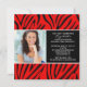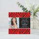 Comece seu evento com nosso belo convite para a graduação em impressão de zebra vermelho e preto. Convite perfeito para a formatura de um segundo grau ou formandos. Basta preencher suas informações adicionar sua foto e você está pronto para ir. Visite nosso compro em www.celebrateitgraduations.com para uma grande variedade de convites para formatura!