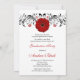 Convites ou anúncios de graduação em flores de margarida vermelha. Este convite de festas floral feminino de formando também fica bonito com uma foto em preto e branco. As cores neste convite para a graduação da margarida são vermelho, preto e branco. Chic, design feminino para ela.
