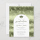 Este design apresenta um padrão geométrico de fundo falso-metálico em verde-azeitona e prata. O texto figura na escrita verde-oliva e na itálico das cinzas de carvão em forma de arco branco, com a palavra "graduação" e o nome do formando em escrita decorativa, juntamente com um boné verde-oliva. O dorso repete o padrão geométrico verde-oliva.