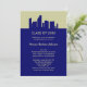 Convite moderno ideal para um formando de arquitetura, construção ou campo semelhante. Apresenta uma silhueta de linha branca numa cor sólida. Excelente para um formando macho ou fêmea. O ano da graduação faz disso uma manutenção. Adicione seu próprio texto.