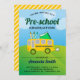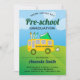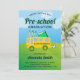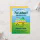Surpreenda seus hóspedes com este convite de formatura pré-escolar bonitinho apresentando um ônibus escolar lúdico com tipografia moderna contra um brilhante fundo ensolarado. Basta adicionar os detalhes do seu evento neste modelo fácil de usar para torná-lo um convite de tipo único. Sacudir a placa para revelar um padrão de listras amarelas e brancas na parte traseira da placa.