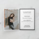 Aproveite um pouco de capricho com uma mistura de digitação neste anúncio de graduação e convite. A frente tem caixas para três fotos de mais velho junto com seu nome, escola e ano de aula. A dentro inclui espaço para os detalhes da cerimônia de início e um convite para uma festa depois, assim como uma grande foto. O verso inclui espaço para você colocar planos futuros para seu formando. Design disponível em vermelho, laranja, azul, verde, roxo, marrom, cinza prateada e preto. A design é facilmente alterada para corresponder às suas cores escolares. Produtos correspondentes disponíveis.