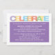 Convite moderno e minimalista. Excelente para formando de universidade, universidade, instituto, escola técnica ou segundo grau. Possui a palavra "Celebrar" em letras grandes em várias cores. Apanhar os olhos e design contemporâneo com um toque de elegância. Adicione a sua própria redação.