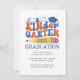 Moderno e divertido este convite para a formatura tem um excelente gráfico com texto escrito à mão, um boné de formatura, diploma e lápis. Perfeito para uma festa de jardim de infância para formandos de jardim de infância!