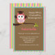 Quem está se formando? Este convite é perfeito para uma pré-escola ou graduação no jardim de infância. Ele tem um centro marrom com borda fina e multicolorida ao redor. Há uma coruja rosa giro vestindo um boné no lado esquerdo deste convite sentado em um galho de uma árvore. Personalize com informações da festa e você está pronto para ir. Dê uma olhada em nossos muitos outros designs e impressões em nossa loja. ©babystar
