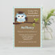 Quem está se formando? Este convite é perfeito para uma pré-escola ou graduação no jardim de infância. Tem um centro marrom com uma borda de bolinhas branca ao redor. Há uma coruja azul bonita vestindo um boné no lado esquerdo deste convite sentado em um galho de uma árvore. Personalize com informações da festa e você está pronto para ir. Dê uma olhada em nossos muitos outros designs e impressões em nossa loja. ©babystar