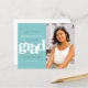 Certifique-se de que todos os seus amigos e parentes serão capazes de celebrar a graduação do seu formando! Envie esta incrível, simples, moderna e personalizada foto "Salvar a Data" anunciada no orçamento para um evento a ser lembrado. A tipografia das cinzas brancas e suaves, a preto, cobre um fundo azul-azul-turquesa aqua. No lado direito, adicione uma foto da sua escolha. Personalize o texto personalizado com o nome, o ano e a data da classe do seu formando. Sua mensagem personalizada e um ícone de boné de formatura azul aqua adoram o verso. Convites de encontro, cartas de agradecimento, bonés, guardanapos, pratos e outras vestimentas de graduação também estão disponíveis nesta coleção de tendências e na moda. Garantido para adicionar diversão na moda à sua ocasião especial! Basta digitar o nome do seu formando, ano escolar e de classe, data, mensagem personalizada, adicionar sua foto, e você pode personalizar facilmente este cartão de lançamento de orçamento de graduação "Salvar a Data". Por favor, me mande mensagens com quaisquer perguntas ou solicitações.
