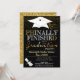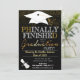 PHinally FinisheD Doutorado Convite à Festa de formatura! Um excelente convida a dar parabéns ao novo formando de formando de doutorado! Possui um fundo de quadro negro e gráficos festivos de graduação!
