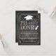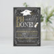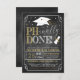 Convite para Festa de formatura de doutorado PhD concluído pela PHnally! Um excelente convida a dar parabéns ao novo formando de formando de doutorado! Possui um fundo de quadro negro e gráficos festivos de graduação!