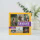 Cartão de anúncio de graduação de na moda e convite de festas contém seis fotos de mais velho com "FORMANDO" como um grande ponto focal. Personalize o texto personalizado moderno com seu nome de formando, escola e ano de aula. Esta design de placa dupla lateral inclui o texto do convite de festa de formatura na parte traseira. Personalize as cores da imagem e das caixas na frente e nas caixas no verso para combinar as cores da sua escola ou coordenar com a fotografia. Disponível nas combinações de cores escolares mais populares e comuns - verde/amarelo, vermelho/amarelo, creme/ouro, azul/amarelo, marinho/ouro, preto/dourado, preto/amarelo, roxo/amarelo, vermelho/prateado e vermelho/preto. Produtos correspondentes e outras cores disponíveis.
