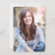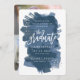 Este moderno convite para a graduação apresenta fundo abstrato pintado na frente e uma foto do formando no verso.