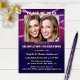 Convite de festa de formatura com sua própria foto em um fundo azul escuro de madeira roxa com luzes festivas de cordas. Roxo é a cor da sabedoria, o que a torna perfeita para a graduação. Criei este convite para uma formatura gêmea, mas é claro que também o podem usar para uma pessoa ou para qualquer outra ocasião!