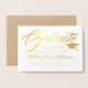 Tipografia de Script Artístico Anúncio de Cartão de Formandos de Foto Convite na orientação horizontal. Linda folha de folha de ouro, com o logotipo do ícone do boné de formatura de borda-moreira. Maravilhoso e clássico para qualquer formando macho ou fêmea. O moderno anúncio sofisticado de graduação é ideal para formandos de nível universitário ou segundos graus de rico. Design de Elegante Clássico Formal com escrevendo de fonte de script estático. Opção barata e excelente em vez de anúncios escolares oficiais. A graduação formal a tradicional e clássica convida a qualquer pessoa, seja ela escola de formando, escola de comércio, enfermagem, medicina ou faculdade de direito.