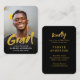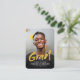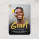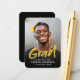 Anúncio de graduação do mini tamanho do script de pincel moderno com foto em preto e ouro, simples e exclusivo. Personalize-o com suas próprias fotos e informações de formando.