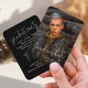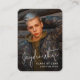 Anúncio de graduação em mini tamanho de script preto e branco e Convide com foto, simples e divertida. Personalize-o com as suas próprias fotografias e informações de formando.