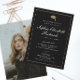 Este clássico convite elegante para a graduação de fotos em na moda apresenta um boné de formatura dourado e um quadro simples com texto personalizável na frente e três imagens na parte traseira. Uma forma excelente de mostrar seu formando. Clique no botão editar para personalizar este design.