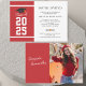 Adicione seu ano de graduação, nome e detalhes do local com data para este moderno fundo vermelho e branco negrito com convite de festa de formatura de tipografia negra usando nosso botão "Personalizar".