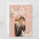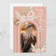 Festas de formatura boêmicas russas com um fundo rosado cinza com uma característica arco-íris, uma foto do formando, folhas secas de palma do deserto com aquarelas, grama pampas, florais rosa e branco, e um modelo de texto elegante que é fácil de personalizar.