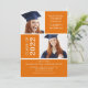 Comece seu evento exatamente com nosso convite/anúncio de formatura de fotos em cor de laranja e branca moderno. Convite perfeito para graduação ou formandos. Apenas preencha suas informações adicione sua foto e você está pronto para ir. Nosso cartão de graduação está disponível em uma grande variedade de cores populares da escola.
