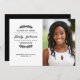 Simples anúncio e convite do cartão com fotos de graduação da tipografia da safra moderna do chic. Personalize o design com sua foto personalizada, seu nome, detalhes de graduação e detalhes opcionais do convite de festas no verso. Clique no botão "Personalizar" para personalizar o texto e a design. Excelente para o ensino médio, ensino médio, segundo grau ou formandos.