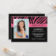 Comece seu evento com nosso convite para a graduação de fotos em zebra rosa-tenda / anúncio. Convite perfeito para a formatura de um segundo grau ou formandos. Basta preencher suas informações adicionar sua foto e você está pronto para ir. Visite nosso compro em www.celebrateitgraduations.com para uma grande variedade de convites para formatura!