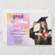 um convite para a festa de formatura hippie para a garota. Fundo multicolorido bonito com flores e convite para fotos