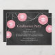 As lanternas cor-de-rosa-claro sobre um fundo de quadro ilustrado definiram o tom desse convite de formatura e da festa. Se forem necessários itens adicionais nesta coleção, entre em contato conosco com sua solicitação em prettyfancyinvites@gmail.com