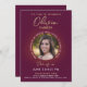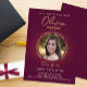 É hora de comemorar sua formatura! Convide seus convidados para a sua festa com este na moda, clássico e moderno convite fotográfico. A frente apresenta um design minimalista com um roteiro elegante e moderno e uma foto personalizável, enquanto a parte de trás ostenta um simples fundo na moda burgundy. Você pode personalizar o convite facilmente alterando as fotos e o texto para torná-lo exclusivamente seu. Este convite combina eterno, elementos clássicos com talento moderno, estabelecendo o tom para uma celebração memorável e marcando perfeitamente este marco especial em sua vida!