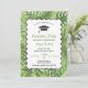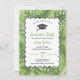 Esse convite moderno e colorido é ideal para celebrar uma festa de formatura com tema tropical. O design festivo inclui um boné de formatura e uma ilustração de borda com palmeiras tropicais em tons de verde. Este é um excelente de convite feliz para um jovem e orgulhoso segundo grau ou estudante universitário.