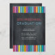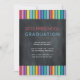 Um convite para a formatura pré-escolar moderno e simples, com filas de giz colorido num fundo de quadro negro. Tipografia no giz! Perfeito para uma celebração pré-k pré-escolar ou para um convite familiar para comemorar seus pequenos formandos!