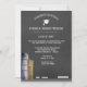 Convite personalizado para formatura de professores com um quadro-negro com giz, borracha e livros. Adicionar os detalhes da festa de formatura