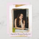Simples e na moda, este design de quadro artístico de ouro giro apresenta um guião cor-de-rosa macio com tinta dourada e brilho. Uma forma excelente de convidar amigos e família para a formatura de qualquer estudante. Também pode ser usada para aniversário, quinceanera, chás de fraldas e qualquer outra celebração.