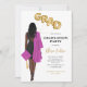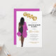 Mulher-americana africana, rosa-Festa de formatura, convidando mulher a retratar desenhando vestido preto, boné e vestido cor-de-rosa, cabelo longo e escuro. As letras FORMANDO em balões faux gold foil style. Personalize com detalhes de festa de formatura, ano de aula e nome da escola. Envie-me uma mensagem para os itens correspondentes.