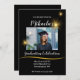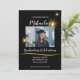 Traga um pouco de brilho para a festa com este convite de festa de formatura preto e dourado. Um roteiro elegante mostra os detalhes que mantêm a foto dos formandos no foco da placa.
