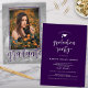 Este convite de festa de formatura é perfeito para o segundo grau ou formando universitário em busca de um simples roteiro roxo e moderno convidado com uma foto de cheio no verso que dá a ilusão de dois retratos. Personalize o seu com todos os detalhes da festa de formando, classe de informações e adicione um retrato favorito da sessão de fotos de graduação. Desenhado pela Simple Desert Design Studios para Zazzle. Envie-nos uma mensagem para personalizar este ou qualquer dos nossos designs para ajustado das suas necessidades.
