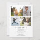 Um convite elegante e moderno para a graduação dupla com uma bela fonte de escrita caligráfica. Este design de fotos do solteiro mostrará sua foto favorita do mais velho. A parte traseira da placa contém mais quatro fotos e espaço para detalhes de uma festa de formatura ou qualquer outra mensagem que você queira adicionar.
