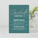 Convite para Graduação de Script Elegante e Chic moderno, com design de tipografia cursiva de rico no marfim e um fundo teal. Este anúncio de tendências é uma escolha adorável para o seu formando! Fácil de personalizar, adicione detalhes de festa de formatura nos campos de texto fornecidos. Clique em "Personalizar" para encontrar opções adicionais de personalização.