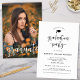 Este convite de festa de formatura é perfeito para o segundo grau ou formando universitário que procura um simples roteiro moderno preto e branco com uma foto de cheio no verso. Personalize o seu com todos os detalhes da festa de formando, classe de informações e adicione um retrato favorito da sessão de fotos de graduação. Desenhado pela Simple Desert Design Studios para Zazzle. Envie-nos uma mensagem para personalizar este ou qualquer dos nossos designs para ajustado das suas necessidades.