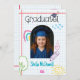 Celebre o seu formando com este brilhante e alegre convite inspirado na escola! Apresentando rabiscos brincalhões como arco-íris, corações, sóis e lápis em um fundo estilo notebook, este design capta perfeitamente o espírito da pré-escola ou do jardim de infância. Adicione a foto, o nome e o ano de formatura do seu filho para um toque divertido e pessoal que a família e os amigos irão adorar. Ideal para festas de formatura pré-escolares, pré-K ou jardim de infância!